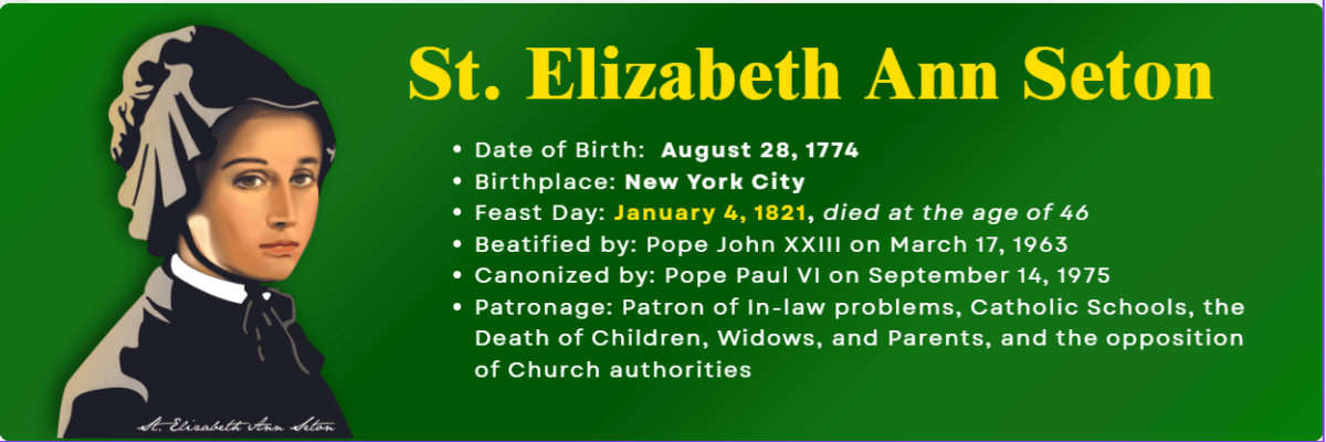 - ^ a b c “CATHOLIC ENCYCLOPEDIA: St. Elizabeth Ann Seton”. www.newadvent.org. Retrieved August 17, 2017.